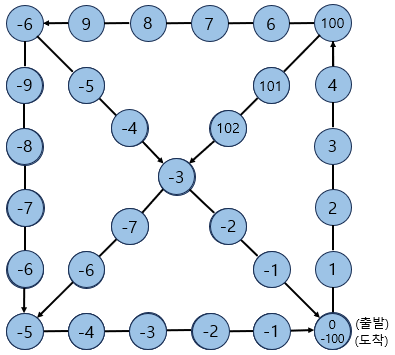 윷놀이 판에 임의의 숫자를 부여한 후, 지름길 조건에 맞게 구현해주었다(음수는 앞으로 지름길을 탈 일이 없는 경우이며, 남은 칸 수를 나타낸다.). 시작점에서 출발하는 경우(0)와 골인 직전의 경우(-100)를 구분해주었다.