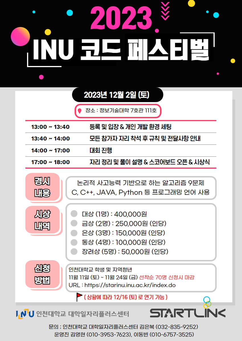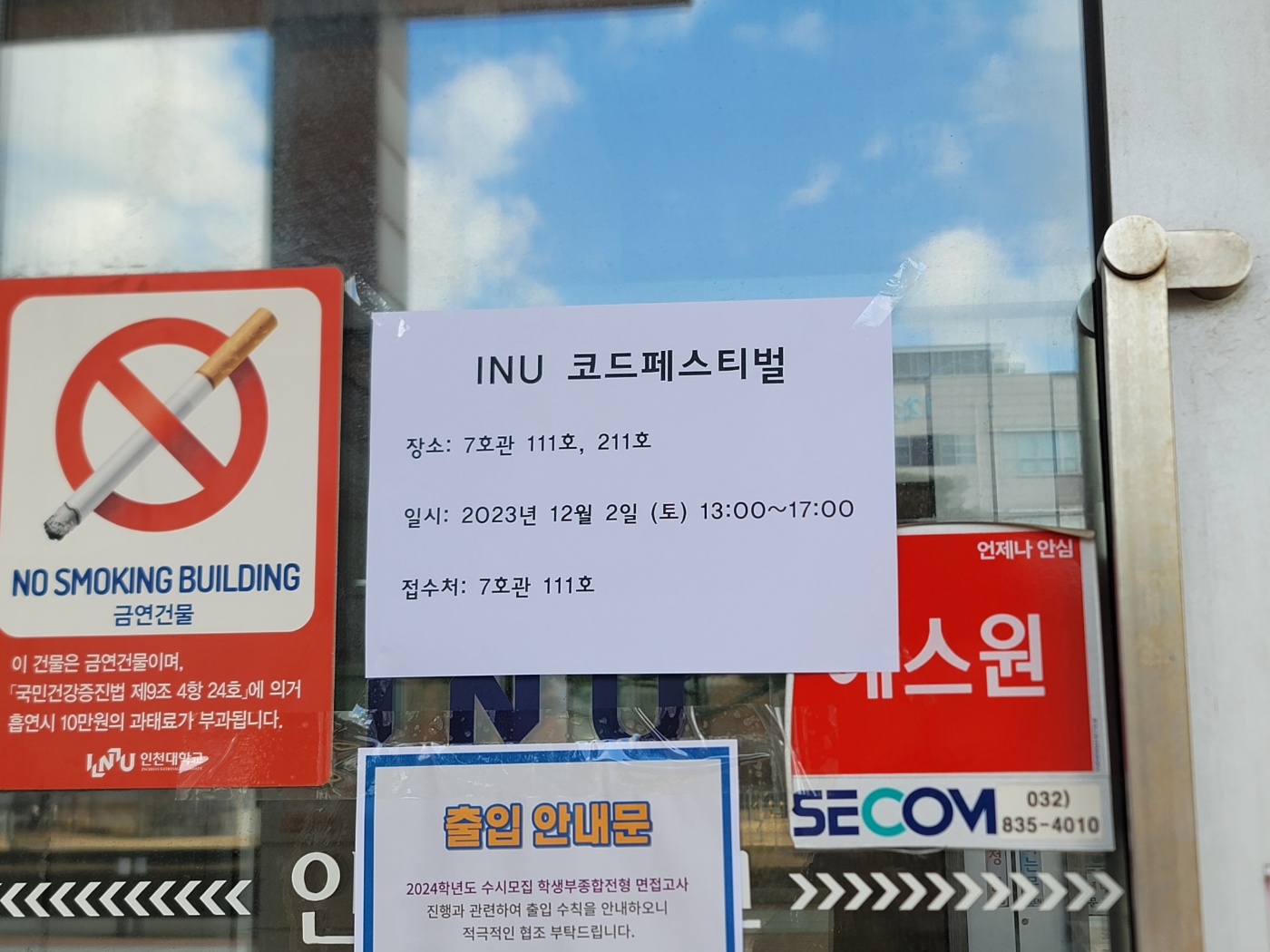 - INU 코드페스티벌 2023 플래카드 (대회장 앞 칠판에 붙이는 용도)