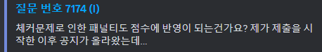 뒤늦게 공백을 제거해달라는 공지를 올리고 체커를 수정했지만, 이미 참가자 두 분이 체커 문제로 수차례 페널티를 받아버린 상황이었다. 이 페널티가 1~2위의 순위를 가를 만큼 유의미했기에, 일단 페널티를 점수에 반영하지 않는다고 답변을 드렸다. 하지만 재채점을 하기 전까지는 수정된 체커의 결과가 반영되지 않아 수동으로 페널티를 계산해야 했고, 대회가 종료되기 전에 서둘러 최초 정답 시각을 계산해본 결과 근소한 차이로 스코어보드상의 순위 변동은 없었다. 하지만 스코어보드에 불필요한 페널티를 새기게 되었고, 대회 중에 스트레스를 받게 해드린 것 같아 정말 죄송했다.