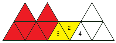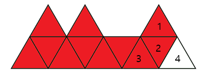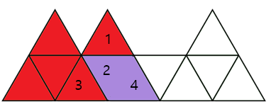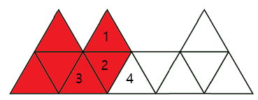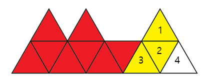 정삼각형 블록 4개를 위,오른쪽순으로 1,2,3,4번으로 가정.