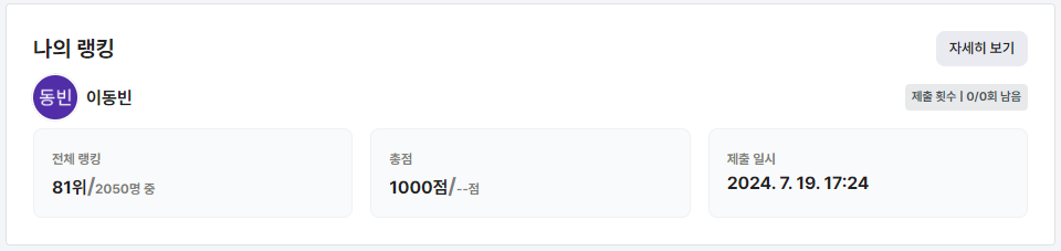 6일 차와 10일 차 문제가 꽤 어려워서 만점자가 많지 않을 거라 생각했는데, 결국 리더보드에 만점자 100명이 채워졌다.